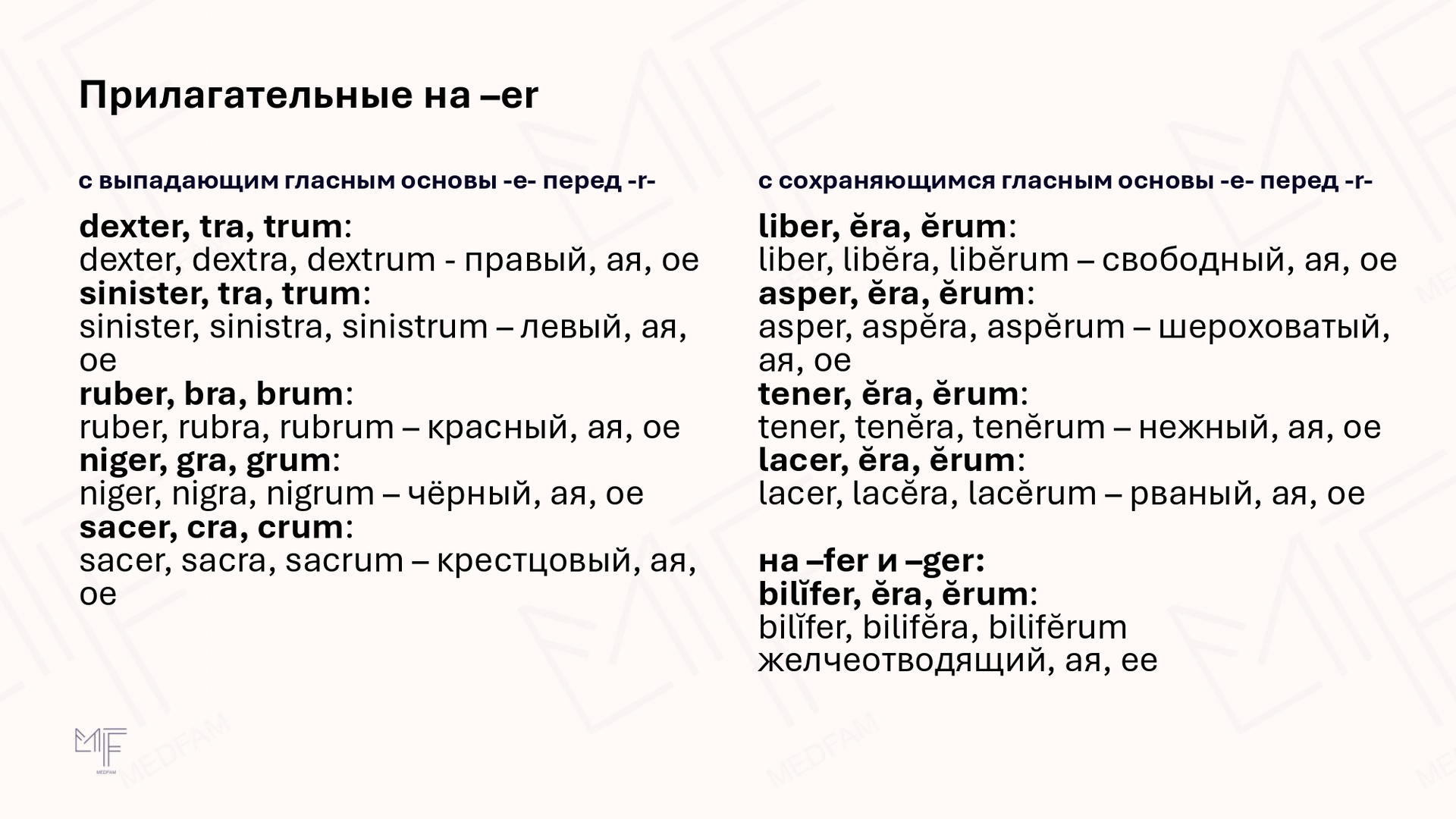 В русском языке мы редко задумываемся о согласовании прилагательного с существительным, но употребляем почти всегда правильно: синее небо, зеленая трава, вкусный кофе (а вот здесь иногда все-таки размышляем). В латинском точно также, форма прилагательных зависит от рода существительных. А кроме того, форма прилагательного зависит от типа склонения. Сегодня мы знакомимся с прилагательными первой группы, которые склоняются по первому и второму склонениям.