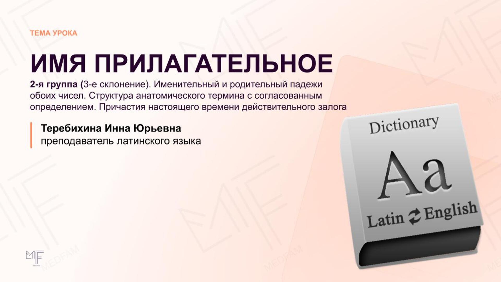 - структура и склонение анатомического термина с согласованным определением;